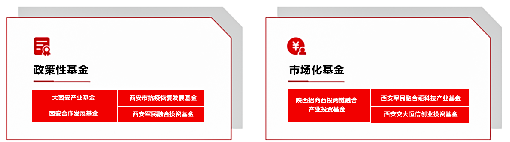 已發(fā)起設立大西安產業(yè)基金,全國首支兼顧“抗疫紓困”和“產業(yè)發(fā)展”的西安市抗疫恢復發(fā)展基金、西安合作發(fā)展基金、軍民融合基金等,參與設立陜西西安國資國企綜合改革試驗基金,西安市工業(yè)(支柱產業(yè))倍增基金等,設立招商西投兩鏈融合基金。
