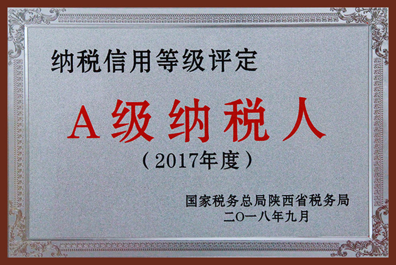 2017年度納稅信用等級評定A級納稅人
