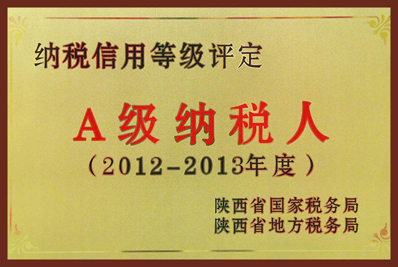 2012-2013年度納稅信用等級評定A級納稅人