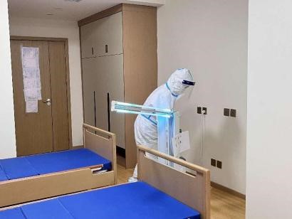 2、保潔做好防護(hù)進(jìn)入發(fā)熱長(zhǎng)者居室進(jìn)行全面消毒和紫外線燈照射消毒。