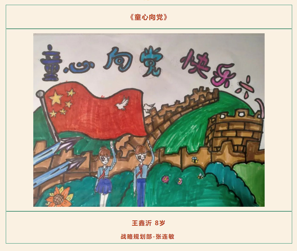 為推動愛黨愛國情懷在員工家庭中落地生根,培育美好家風,構建和諧融洽的親子關系,營造文明健康的家庭氛圍,在“六一”國際兒童節(jié)來臨之際,公司工會開展“童心向黨 快樂六一”親子繪畫活動。